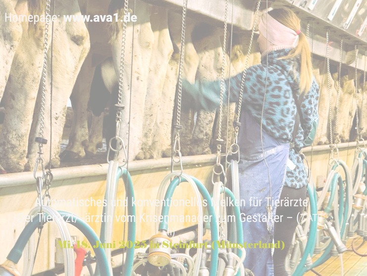 In diesem speziellen AVA-Seminar werden Sie von einem absoluten Fachmann geschult. Dr. Dirk Hömberg, Münster, ist seit vielen Jahren in der Beratung von Milchviehbetrieben im In- und Ausland bekannt und erfolgreich. In Zusammenarbeit mit den jeweiligen Hoftierärzten berät er Betriebe mit Mastitis(-bestands-)Problemen in Sachen Melkvorgang, Melktechnik und das „Drumherum“ - in den allermeisten Fällen in dieser „Kooperation“ sehr erfolgreich.