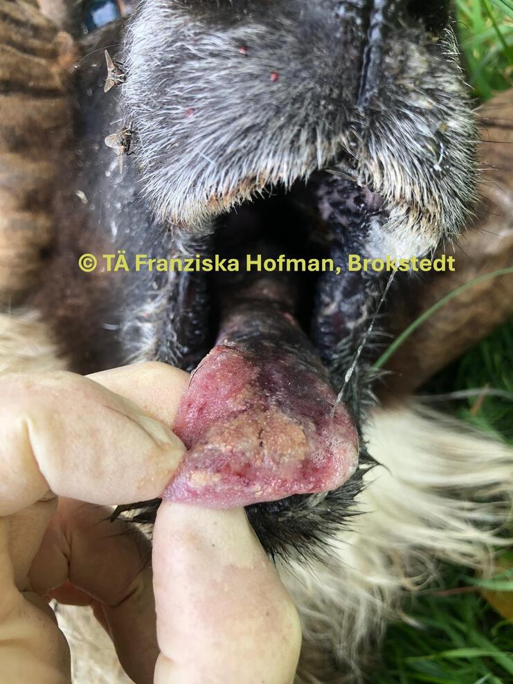 Blauzungenkrankheit: Zunge einer erkrankten Kuh
